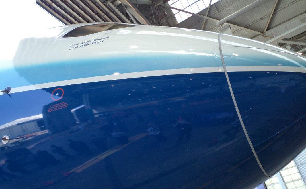Alas the Air New Zealand livery does not mean this is the airline's Dreamliner. Instead it's the aviation equivalent of a "temporary tattoo," Mr Davis quipped.