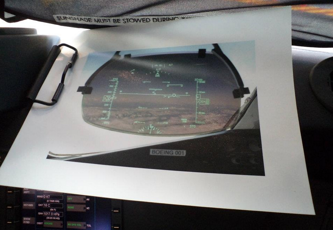 "The biggest innovation on the cockpit though is straight out of Top Gun – a flip down “heads up display” or HUD [pictured above]. This is basically a clear plastic panel that sits in the pilots’ line of view, displaying essential information and removing the need to constantly shift your gaze down at the instruments and up at the windscreen," Mr Davis said. (Click to enlarge photo and you can make out the green lines of the HUD display.)