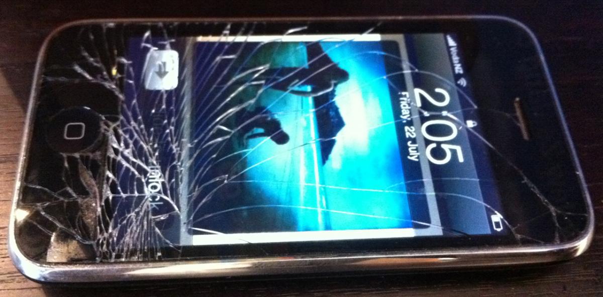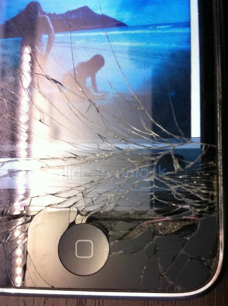 The screen had cracked in a hospitality incident, but the Apple handset just kept on trucking.