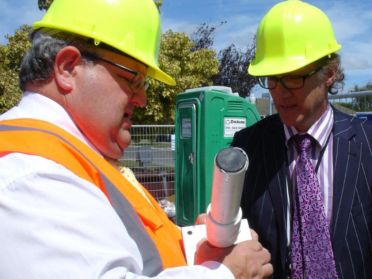 When in town, Gerry reveals to media the amazing post-quake progress with his baffling grasp of statistics – billions already spent, enough new pipes to encircle the planet three times.