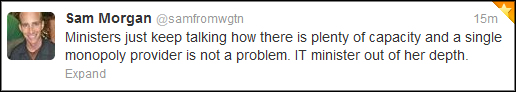 "Ministers just keep talking how there is plenty of capacity and a single monopoly provider is not a problem. IT minister out of her depth."
