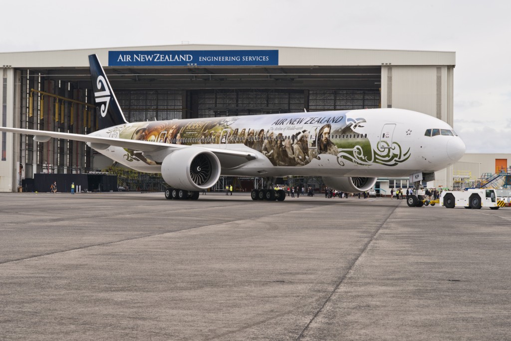 It features a 73-metre canvas that Air New Zealand says is the largest ever applied to an aircraft. It took six days and 400 man hours to apply.