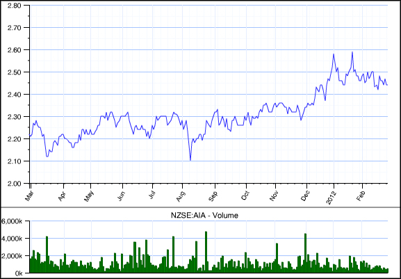 Auckland Airport 12-month chart courtesty CapitalIQ. Click to enlarge.