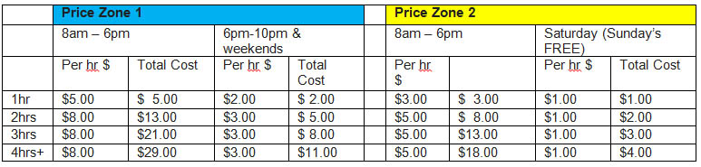 Inner city streets such as Albert and Quay Sts will be more expensive, while charges will be less in the outer CBD.