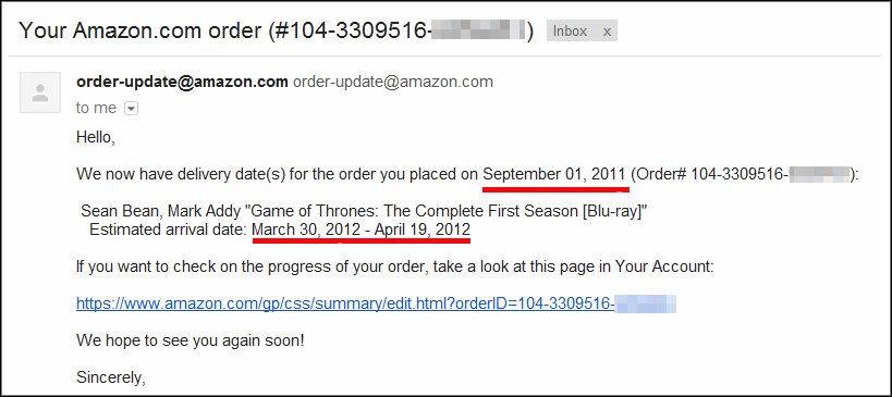Amazon recently emailed to say it would arrive in March or April.