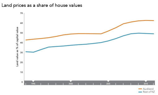 In particular, the Productivity Commission’s Report noted that the land value of housing had risen significantly, particularly in Auckland, with land-use constraints a key driver of this escalation (see next chart).