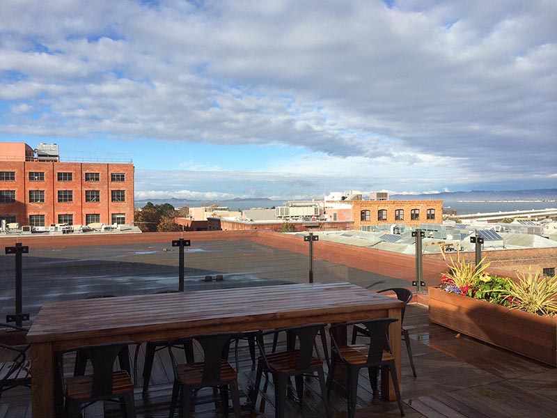ABOVE & BELOW: At the risk of this beginning to look like a real estate brochure with the owner in every shot, here's Sutherland on the roof of Xero's new building. There are views south to the Financial District, marked by the Transamerica Pyramid, and north to the stretch of San Francisco Bay where the America's Cup was raced.