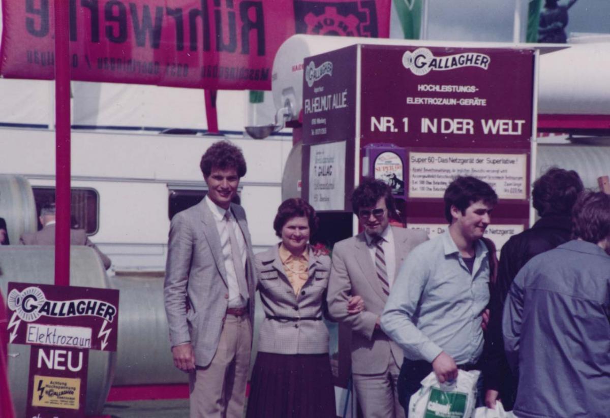 ABOVE: Much of Bill Gallagher’s time was spent attending agricultural shows around the world. Here, in 1982, he is with Bernd and Martha Allie, Gallagher’s German distributors.