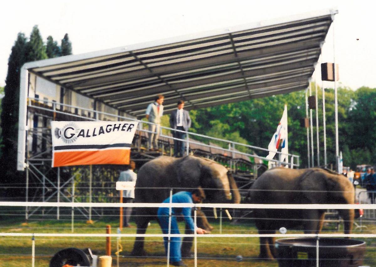 ABOVE: Erik Dijkstra used circus elephants to demonstrate the power of the Gallagher electric fence.
