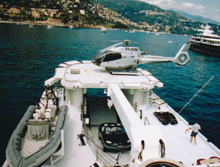 Through this difficult period Gibbs had a helpful distraction. In October 2003, just after the Aquada’s public launch, he’d bought a boat in partnership with Douglas Myers. No ordinary boat, Senses was a 59 metre, 1000 ton ship, equipped with two helipads, one helicopter and a flotilla of small craft, including a charming 12.8 metre Nelson tender and a Halmatic Atlantic 24, a high-speed rigid inflatable favoured by the British military. Senses had a crew of 14. Senses was designed to be equally at home in the Arctic or Saint-Tropez, and best of all, for Gibbs, it had a ramp at the stern up which he could drive an Aquada. With the helicopter, Aquada and other boats, Senses was really a luxury base for exploration. When cruising up the coast from Barcelona to Nice it was possible to fly into Perpignan for a bistro lunch, or drive the Aquada in.