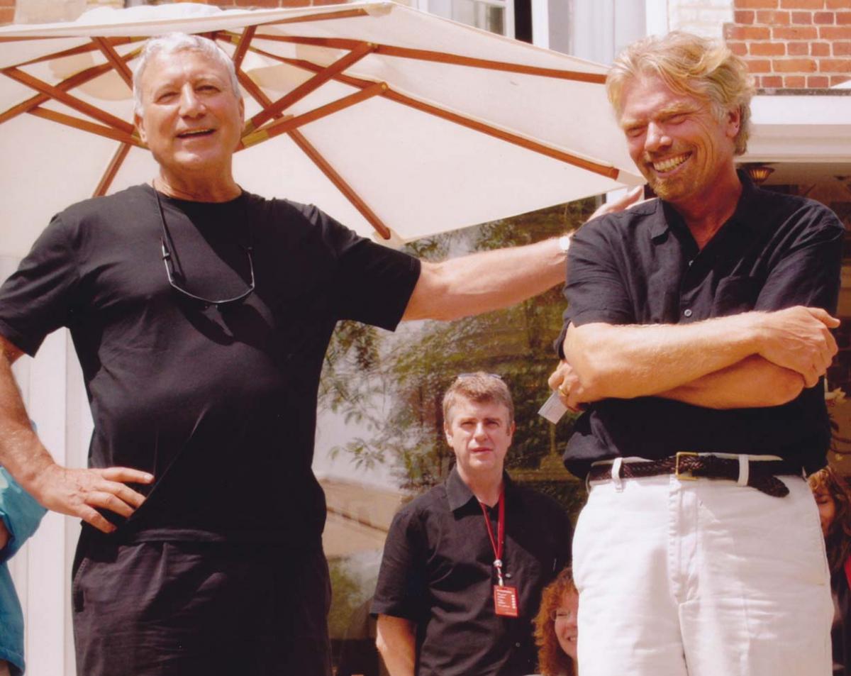 Gibbs and Richard Branson celebrate after the successful Channel-crossing record.