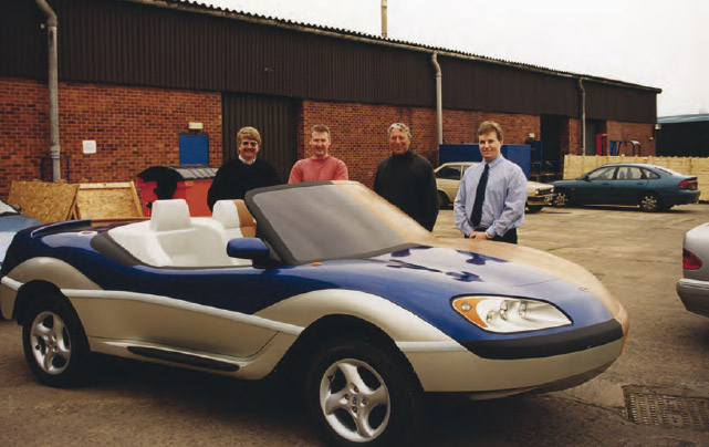 Neil Jenkins, Andy Yeomans, Alan Gibbs and Steve Bailey, with the styling clay model in 2001.