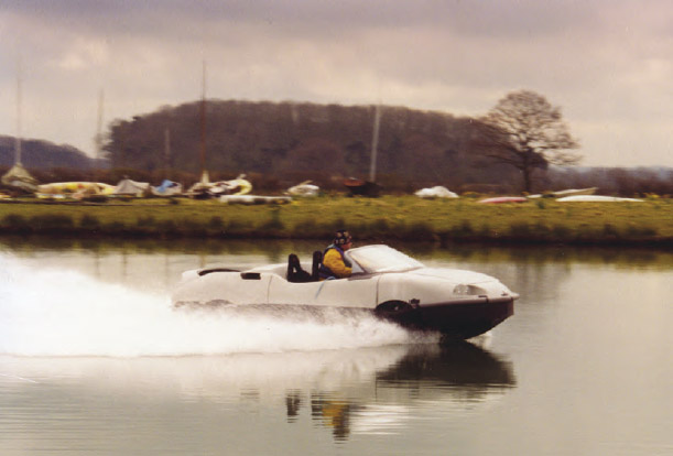 On inspection, it turned out that for some reason the ‘butt plug’, as we called it, a drain plug on the back of the hull under the jet, had been left open on Gibbs’ Aquada. Neither of us had seen it. Then, as the water came in, a light on the dashboard had lit up telling the driver to switch on the bilge pump. But, quite naturally, in all the excitement he hadn’t noticed it. These are the sorts of lessons you need to learn when building a vehicle; we subsequently added a buzzer to the light for the bilge pump and then made the pump automatic. But it was a nasty lesson, because a large crowd had gathered and someone had taken photographs