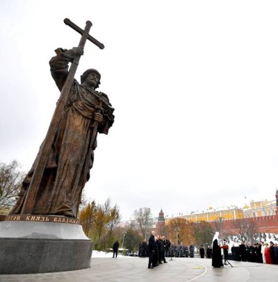 Putin unveils statue of Prince Vladimir.