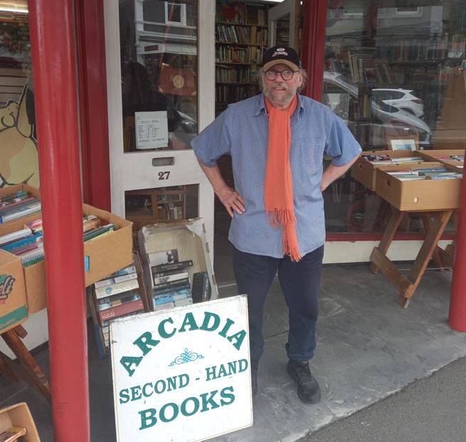 Jim Vannisselroy at his bookshop inPort Chalmers.