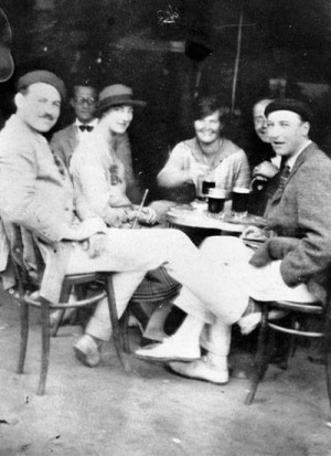 Hemingway, left, in Pamplona, 1925, with wife Hadley, centre.