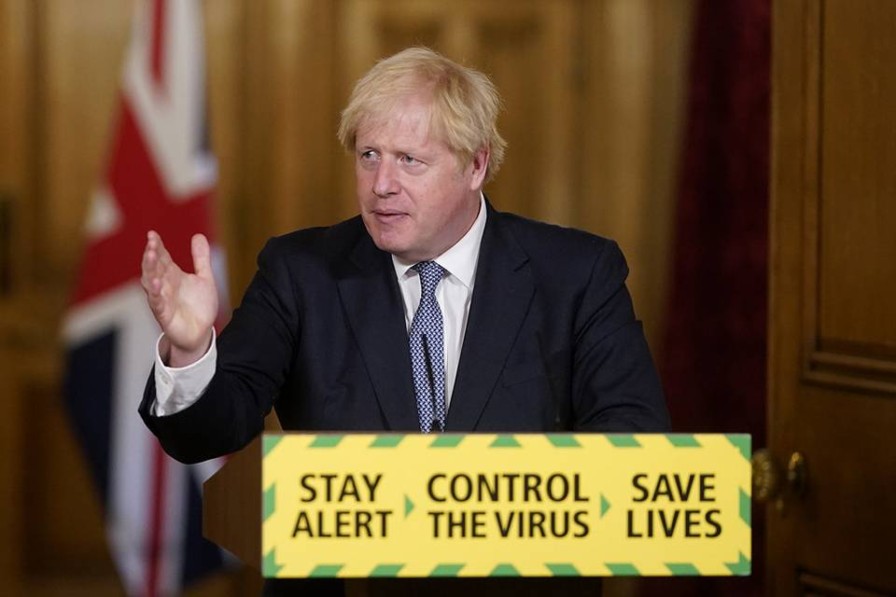 Boris Johnson at a media conference during the Covid-19 pandemic.