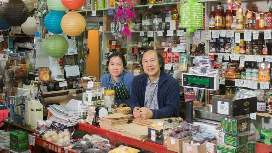 Barry Wah Lee and his wife in their Hobson St shop, Auckland, in 2016. It was in Greys Ave from 1904-66. Photo: King Tong Ho.