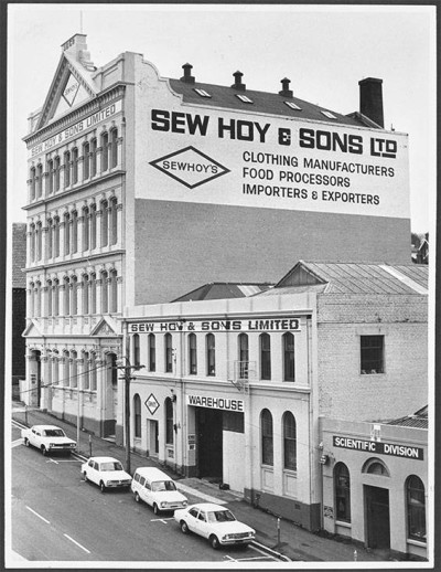 Choie Sew Hoy opened his first shop in Dunedin in 1869. Over several generations, the Sew Hoy name was synonymous with business. It peaked in 1958 as an employer of 700 mainly non-Chinese in textile and clothing but collapsed in 1989 when that industry lost protection.
