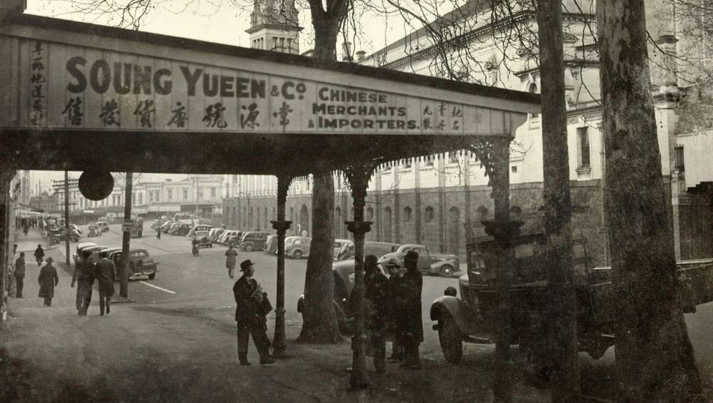 Auckland’s ‘Chinatown’ in Greys Avenue, 1940s. Source: Auckland Libraries Heritage Collections Footprints 02487, photographer Alton Francis.