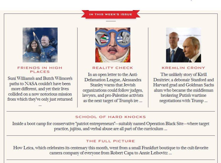 On the other side of the ledger, Carter launched Vanity Fair’s annual Hollywood issue and staged its legendary Oscars after-party. A three-page gatefold cover is still a feature of this year’s edition. It spiced up its Hollywood stories with a first-hand account by Karen Read, facing another trial for the alleged killing of her policeman boyfriend, and the filmmaker of The Apprentice describing efforts to stop his story of Trump’s early days being screened.