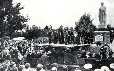 The statue of Margaret Cruickshank is unveiled at Waimate in 1923.