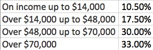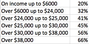 The closest we ever came to a flat tax during my working lifetime was a two-tier approach that was introduced in 1989. At that time, tax applied at a rate of 24% on income up to $30,875 and at 33% on income earned over that amount.