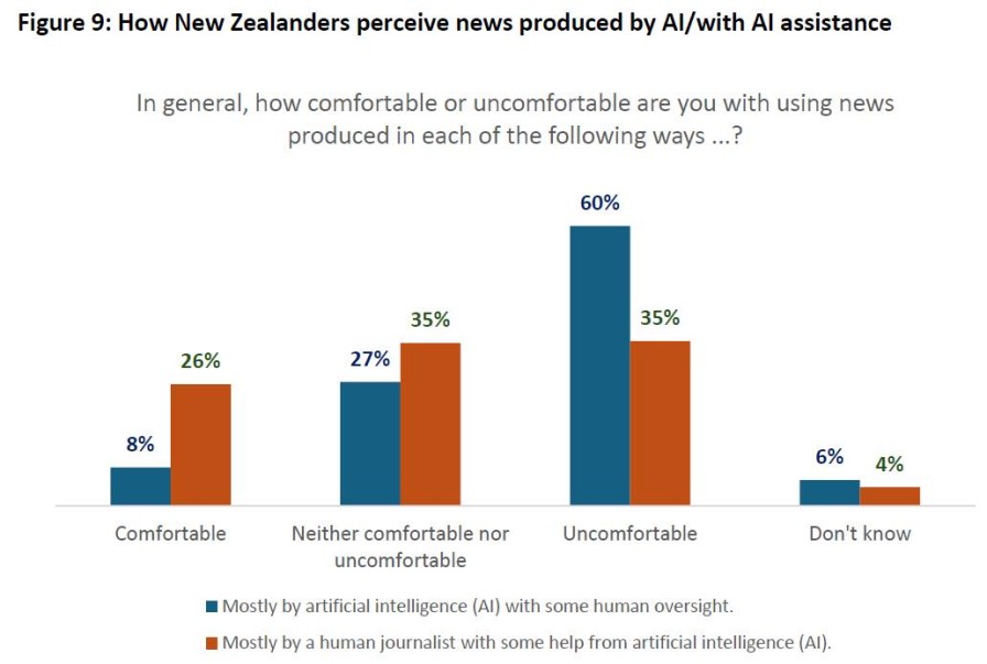 At the same time, New Zealanders’ trust in news and journalism declined further, the report showed. About 32% of New Zealanders said they trust “most of the news most of the time”, a one percentage point drop from the 2024 level of 33%. This was a smaller decline than the year before, when trust in news in general fell significantly from 42% in 2023 to 33%.