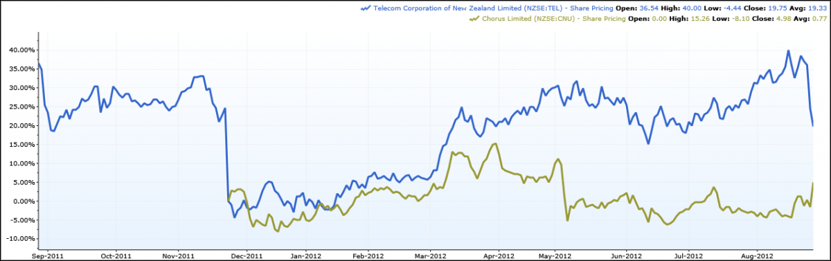 PLUS: Ponsonby pain | Closing the gaps: how the stock chart looks after Telecom's plunge and Chorus' sharp rise.