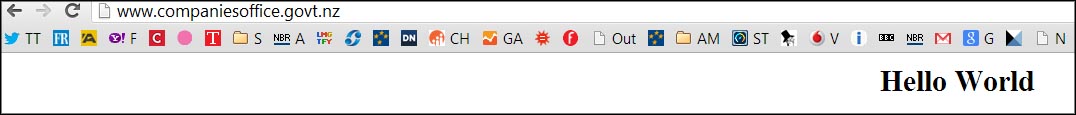A reader sent NBR a screen shot of www.companiesoffice.govt.nz that displayed nothing but the message: "Hello world."
