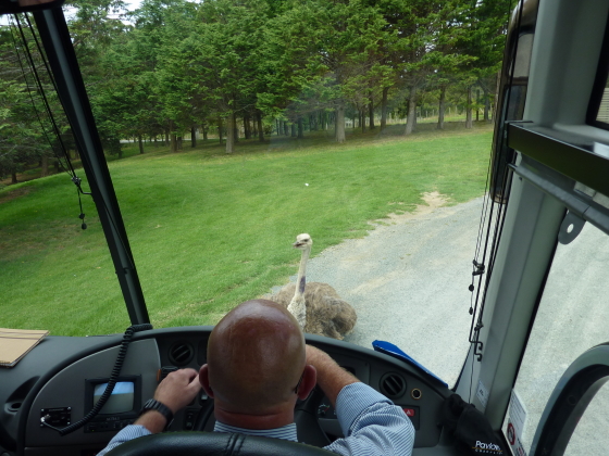 As we were driving out, we encountered this ostrich happily sitting down on the road blocking it. He wouldn’t move even with the bus in front of him. Someone had to get out and lead him away.