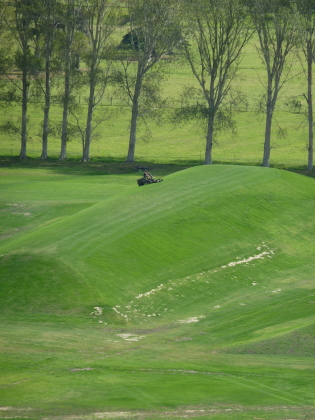 This is a close up of A Fold in the Field with a mower making its way up over one of the folds.