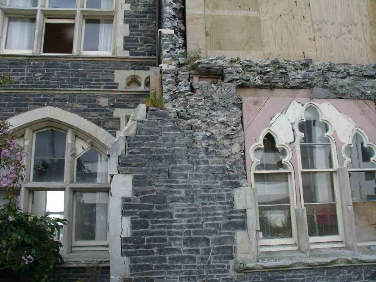 The battered McKenzie and Willis building facade, corner of Tuam and High Sts