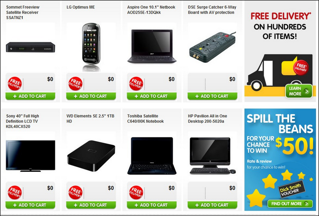 A Dick Smith website glitch this morning advertised all products as free.