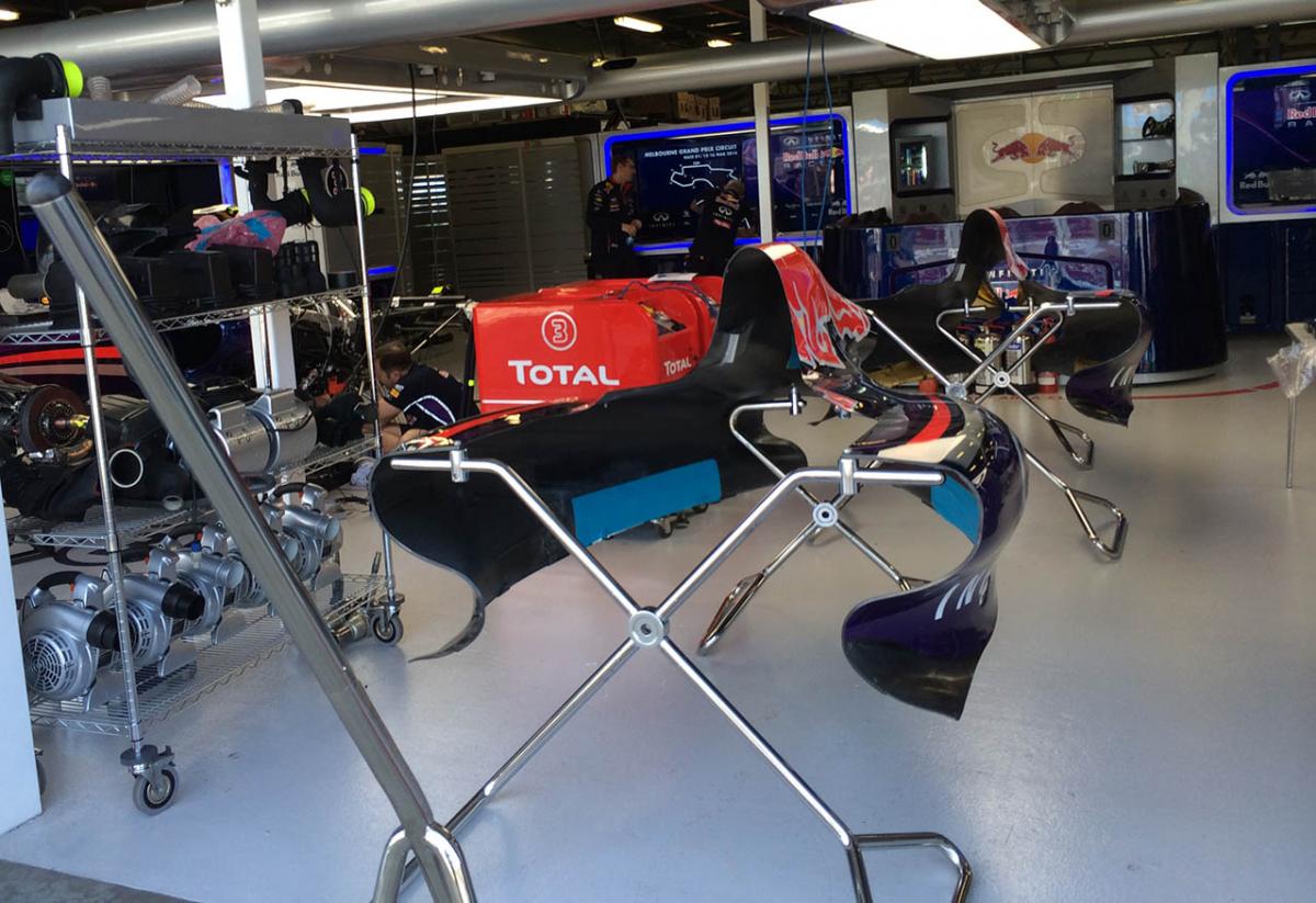 There are also a series of design changes, including new wings, and a lower nose - primarily for safety's sake (the speed and aerodynamics of a Formula One car are, functionally, no different from a small airplane; if the car was flipped on its back, it would fly. And as it takes a corner, an F1 car can generate more than 3G - that is, more than three times its own weight pressed down it, says Peasland - who should know; before coming to Red Bull Racing soon after Red Bull purchased the old Jaguar Racing a decade ago, he was a aerospace engineer.)