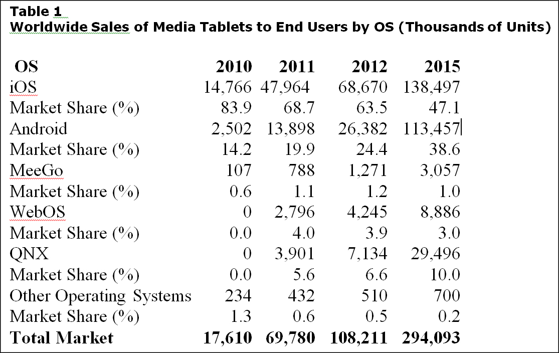 HP Palm WebOS tablets are also seen as a bust. Gartner doesn't even mention Microsoft Windows 7 tablets.