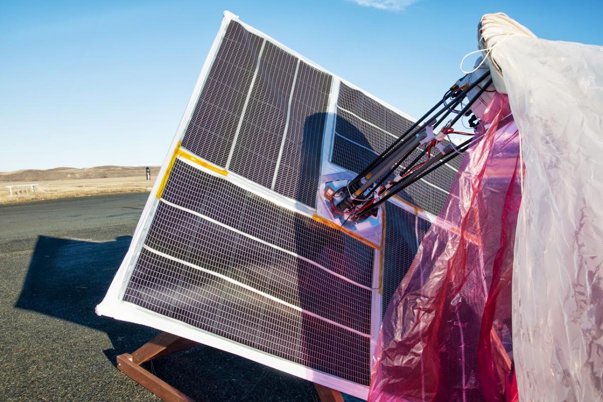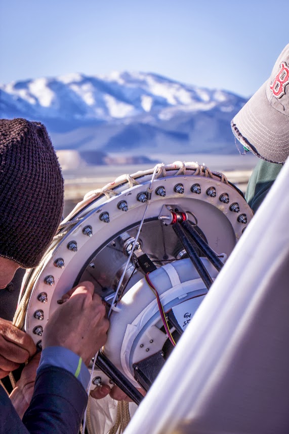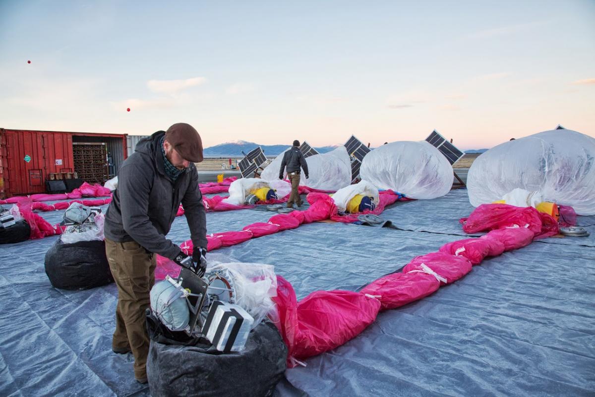 Installing the altitude control system. The balloons change altitude to catch wind currents in different directions.