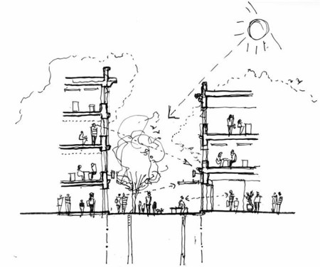 There are three themes to address. First, the design must promote both social interaction and access – a type of “marketplace.” Next, the building edges must enable meaningful connections to the natural environment. By this, we do not mean just the introduction of greenery. Finally, we advocate prioritising appropriate human scale, particularly at the base of large-scale buildings.