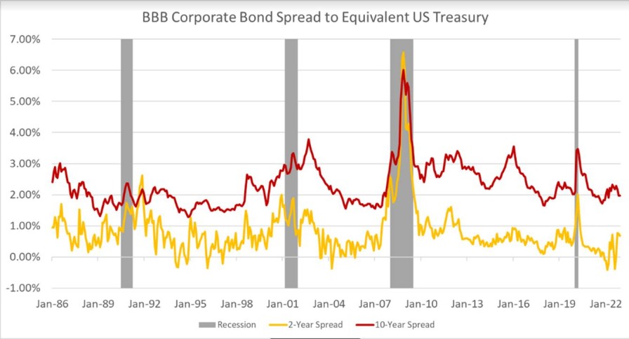 Source: Ice Data Indices, LLC, ICE BofA BBB US Corporate Index Effective Yield [BAMLC0A4CBBBEY], retrieved from FRED, Federal Reserve Bank of St. Louis, March 15, 2023.