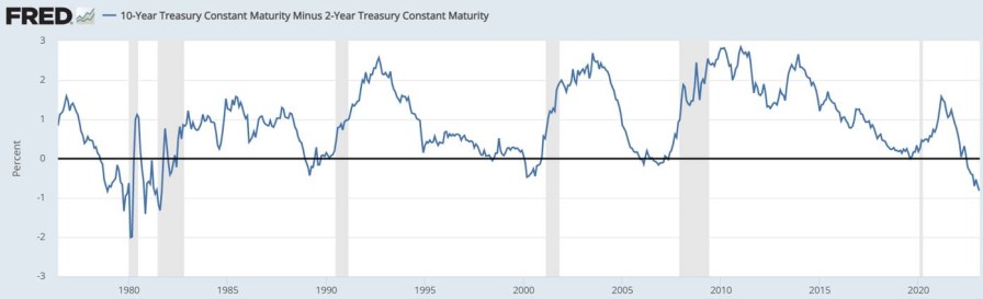 Over the past 40 years, the USTYC has only spent 9% of the time with a negative curve, the occasions short lived, and often anticipating economic downturns (recessions).