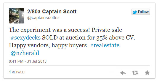 The successful sale of the property by the Glen Eden couple this week without the use of a real estate agent might be put down to the smart use of social media or as the NZ Herald article cited “House buyers flock to tweets”.