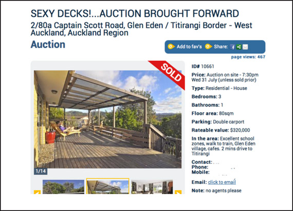 The property at 2/80A Captain Scott Road sold at auction on the 31st July for a price described by the sellers as 35% above CV which in the current Auckland market looks to be a good price. The auction process ensured that interested buyers stepped up to bid. It was the auction process that really ensured the successful sale – not social media.