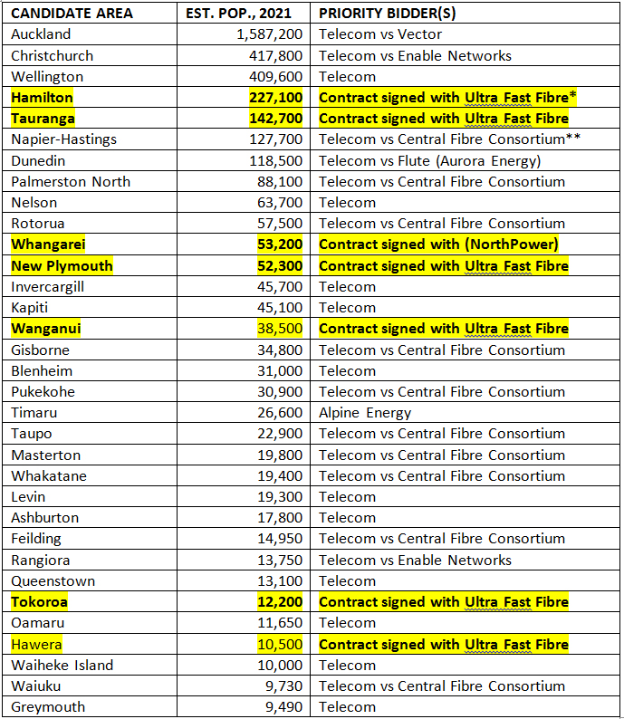 * Ultrafast Fibre consortium consist of Wel Networks, Velocity, Waipa Networks, Hamilton Fibre Network