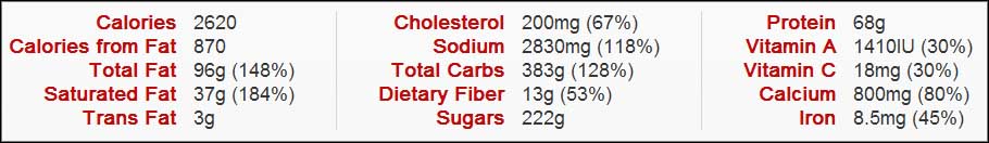 How the lunch stacks up according to McDonald's online menu builder (click to zoom):