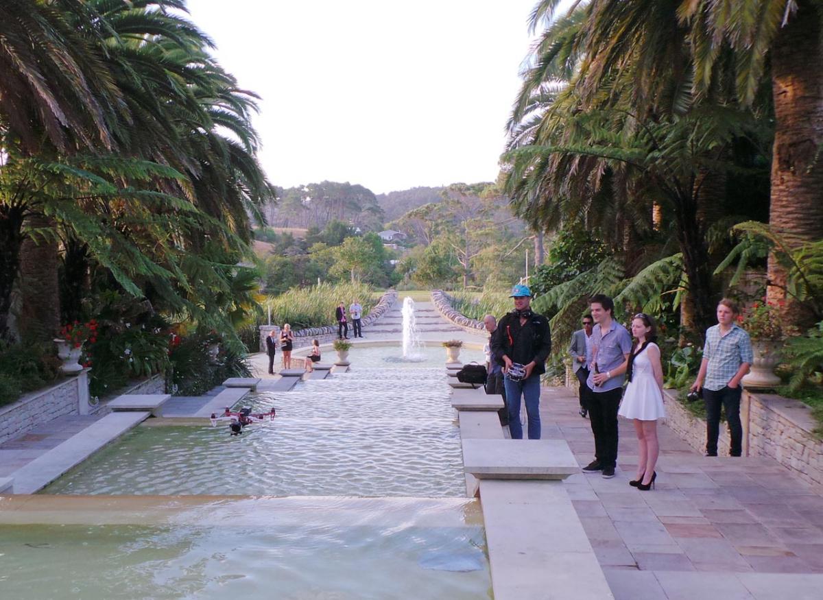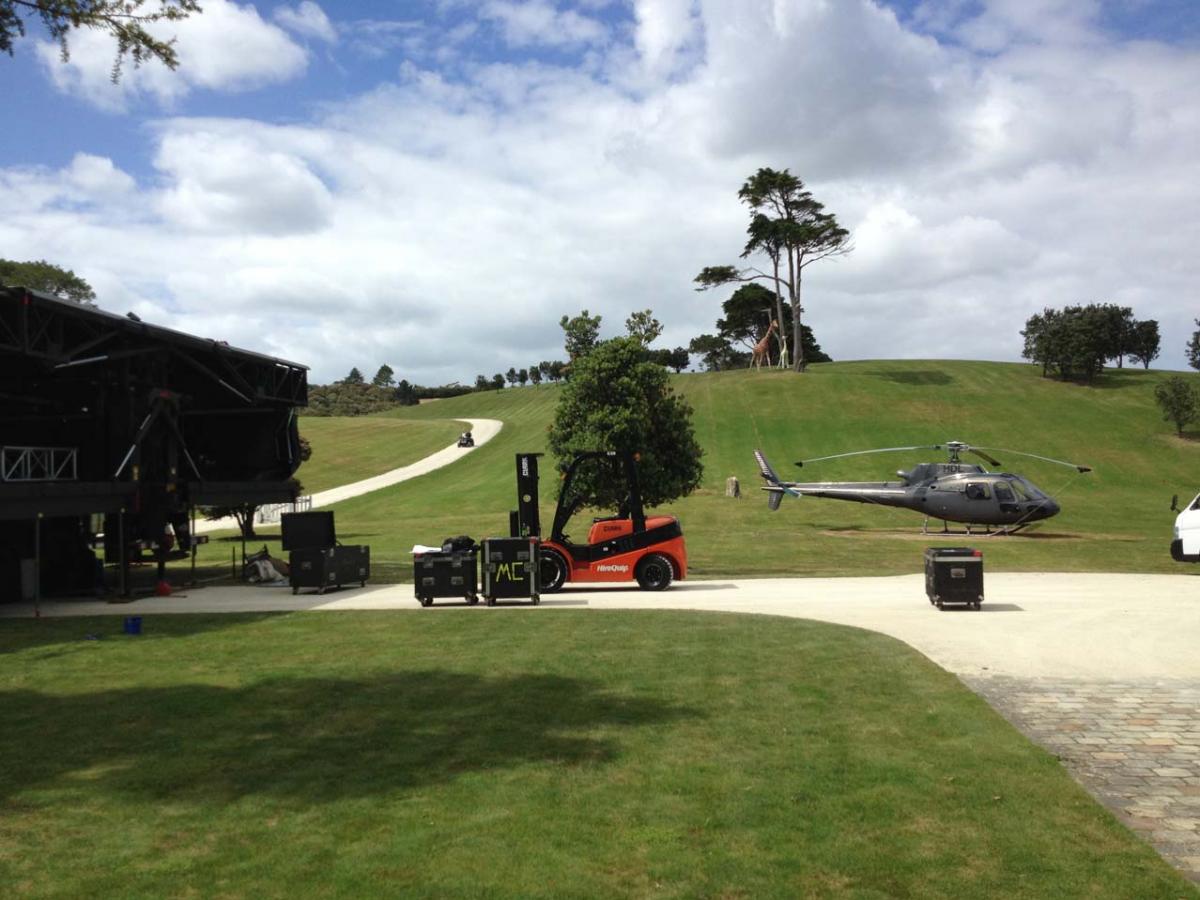 A helicopter was onsite, but Kim (still under bail conditions, albeit pretty liberal ones these days) is not extending his transportation fleet. A security guard told me it was supplied for the event by the production company.