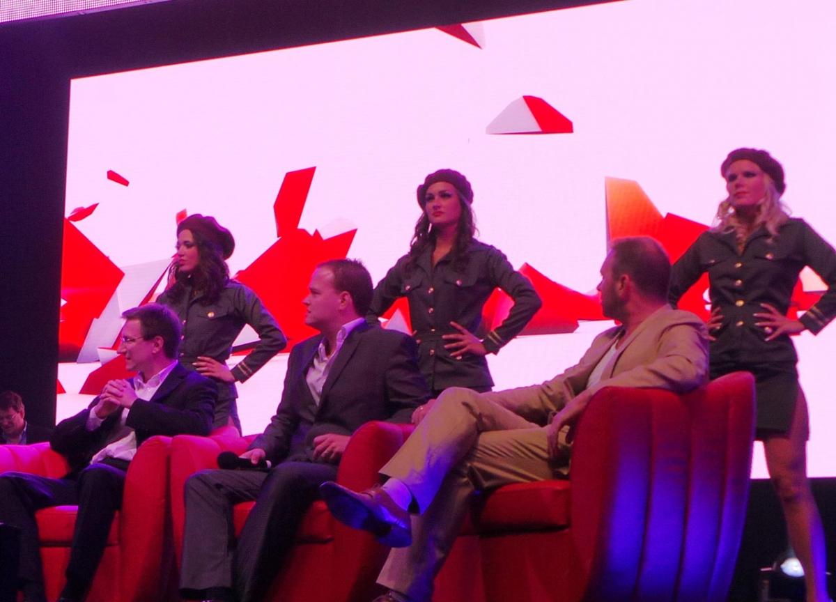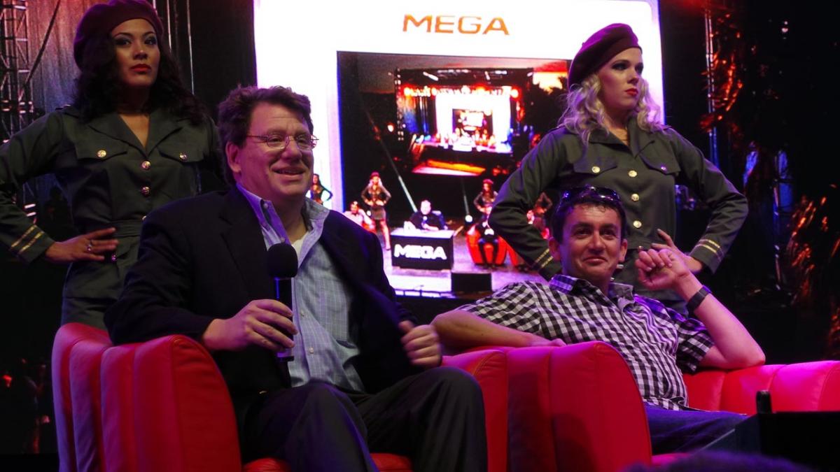 In keeping with the man himself, the event was equal parts cheesy and visionary. It included a helicopter and "FBI" agents rapelling down from the mansion roof. And with a row of mini-skirted guards in front of him, the accused pirate waxed lyrical about the role of Mega's encryption technology in an age of prying governments.
