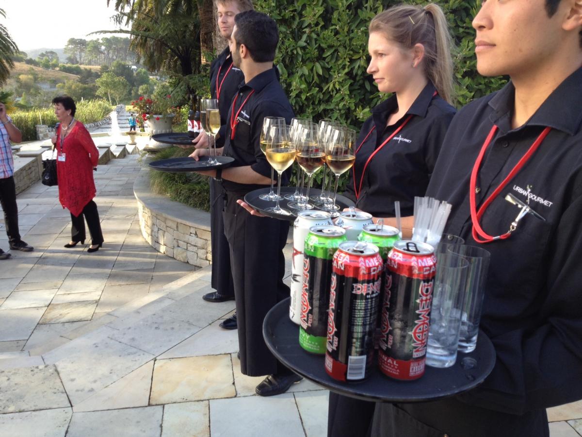 NZX-listed caft beer Moa got a look in with the catering. But this being a Kim Dotcom function, there were also bucket-sized cans of energy drink.