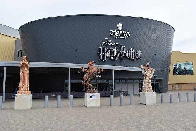 The entrance to Warner Bros Discovery’s Making of Harry Potter studio in London. (Source: Wikimedia Commons).