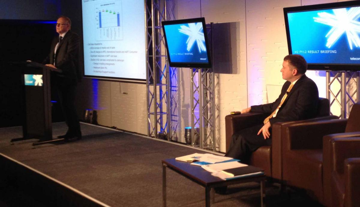 During his first tour of duty at Telecom, Mr Moutter had a reputation for not suffering fools. Today, he was relaxed and upbeat, only expressing mild annoyance at one point when a reporter approached the stage to take photos on his iPhone, blocking the webstream camera.