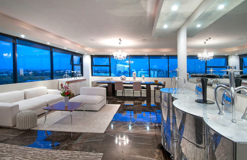 This apartment is the entire top floor of the Auckland CBD building known as The Peach Tower. Two lifts open into this apartment which boasts an entry foyer with marble floors and custom lighting. This penthouse has includes a separate studio area ideal for teenagers or guests. View full listing here.